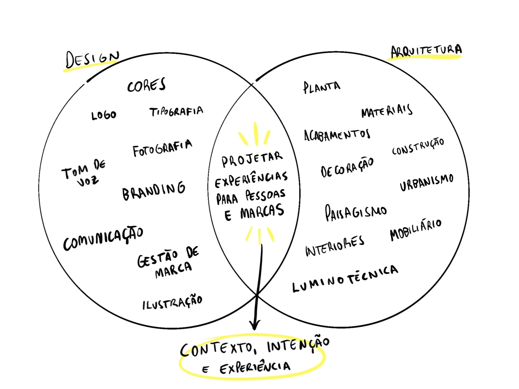 Projetar é a inteligência fundamental da arquitetura e do design, ainda que estes tenham suas diferenças práticas ou teóricas. E desenvolver experiências, marcas ou espaços é uma atividade multidisciplinar, que exige tanto o domínio técnico dos processos, quanto a sensibilidade de lidar com pessoas.